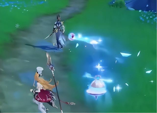 圣遗物方面,考虑到她不能带勇者套,E技能又有输出,所以她的圣遗物大概率是剧团套,想抽的同学可以提前开始刷了。然后她的大招就更简单了,释放后会为全队恢复一次生命,然后再持续为站场角色恢复生命。简单理解就是希诺宁的大招,加了一个一次性的全队恢复效果。